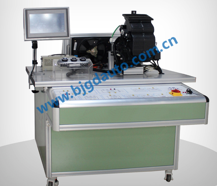 本實(shí)訓(xùn)臺(tái)采用鋁型材制作,原車(chē)配件組裝調(diào)試而成,可直觀、清楚、方便的展現(xiàn)了純電動(dòng)汽車(chē)空調(diào)的工作過(guò)程及原理。此實(shí)訓(xùn)臺(tái)與傳統(tǒng)汽車(chē)空調(diào)系統(tǒng)不同的是空調(diào)壓縮機(jī)直接靠電力驅(qū)動(dòng),通過(guò)電力驅(qū)動(dòng)帶動(dòng)壓縮機(jī)工作,暖風(fēng)使用電加熱,可快速供暖,從而可調(diào)節(jié)車(chē)內(nèi)的環(huán)境溫度,提高舒適度。