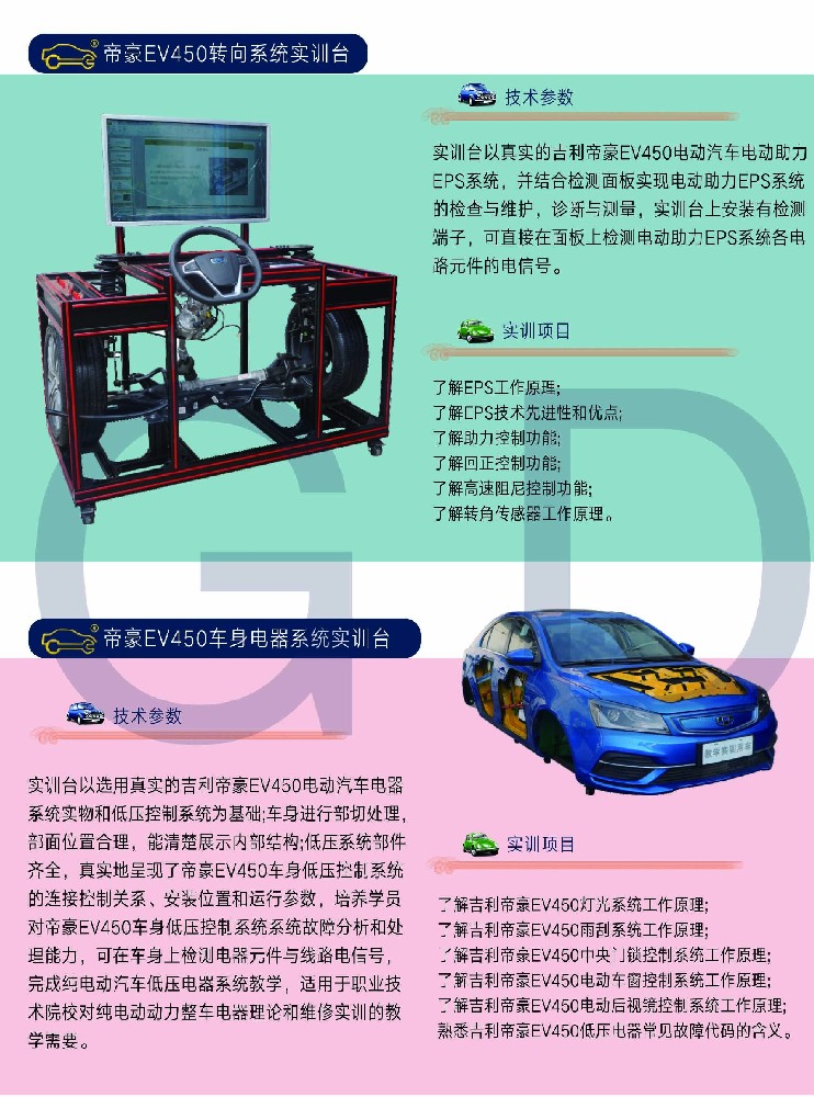帝豪EV450轉(zhuǎn)向系統(tǒng)實(shí)訓(xùn)臺(tái)&車(chē)身電器系統(tǒng)實(shí)訓(xùn)臺(tái)