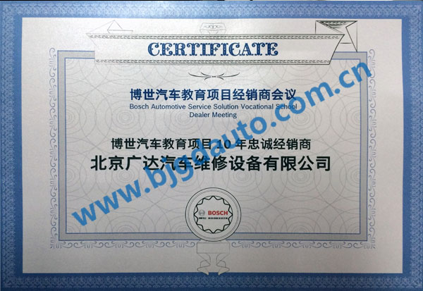 1月18日,博世汽車教育項目經(jīng)銷商會議在三亞舉行,我公司榮獲“博世汽車教育項目十年忠誠經(jīng)銷商”榮譽。博世汽車教育項目和我公司自合作以來,憑借我公司自身強大的行業(yè)影響力和眾多客戶對我公司的大力支持,為博世汽車教育項目的諸多產(chǎn)品服務(wù)做出了良好的市場份額。一直以來,凡我公司經(jīng)銷的博世汽車教育項目相關(guān)的產(chǎn)品,從真正意義上做到了7X24小時的“雙售后服務(wù)”,大大提高了客戶的滿意度。