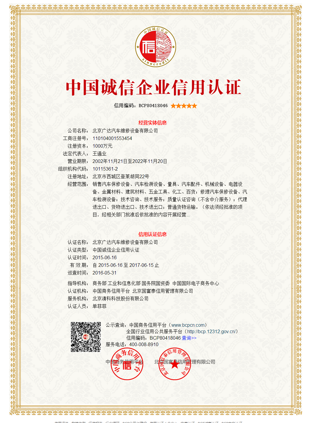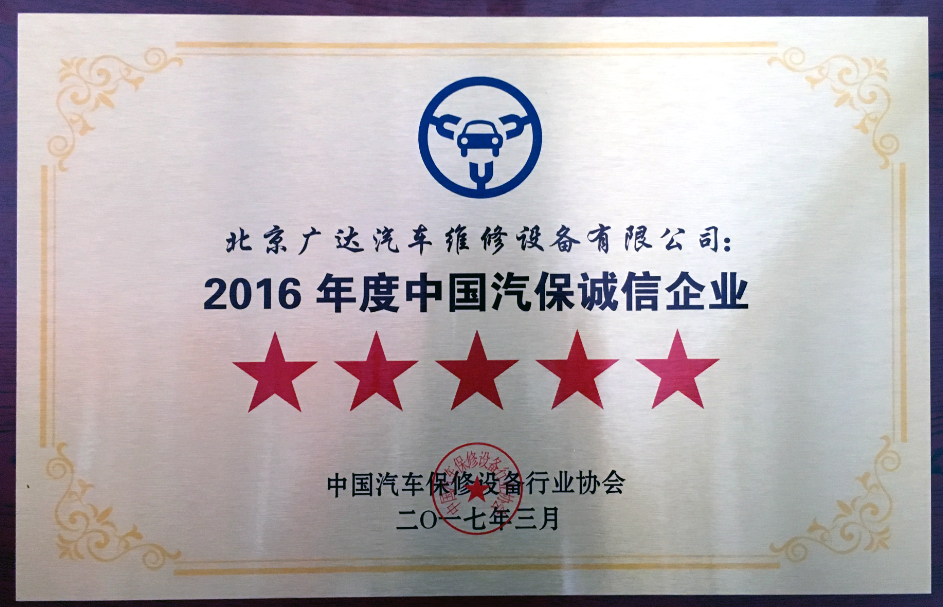 祝賀北京廣達榮獲“中國汽保誠信企業(yè)”五星級