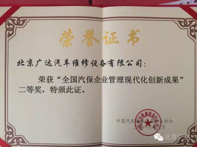 會議期間,還公布了全國汽保企業(yè)管理現(xiàn)代化創(chuàng)新成果的評選結(jié)果,北京廣達(dá)時刻緊跟市場大環(huán)境的發(fā)展,從內(nèi)部管理到對外銷售、服務(wù)等方面開展了一系列的自我創(chuàng)新轉(zhuǎn)型,并在此次評選中榮獲二等獎。